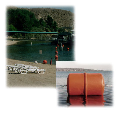 Barrier floats are attached in a series to restrict boating traffic or swimmers from specific danger areas such as around dams, spillways and swim areas.