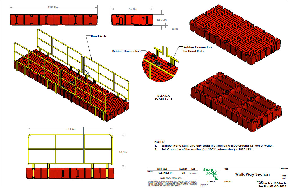 • Buoyancy (per platform, 1 module): 2,916lbs / 1,323kg at full submersion